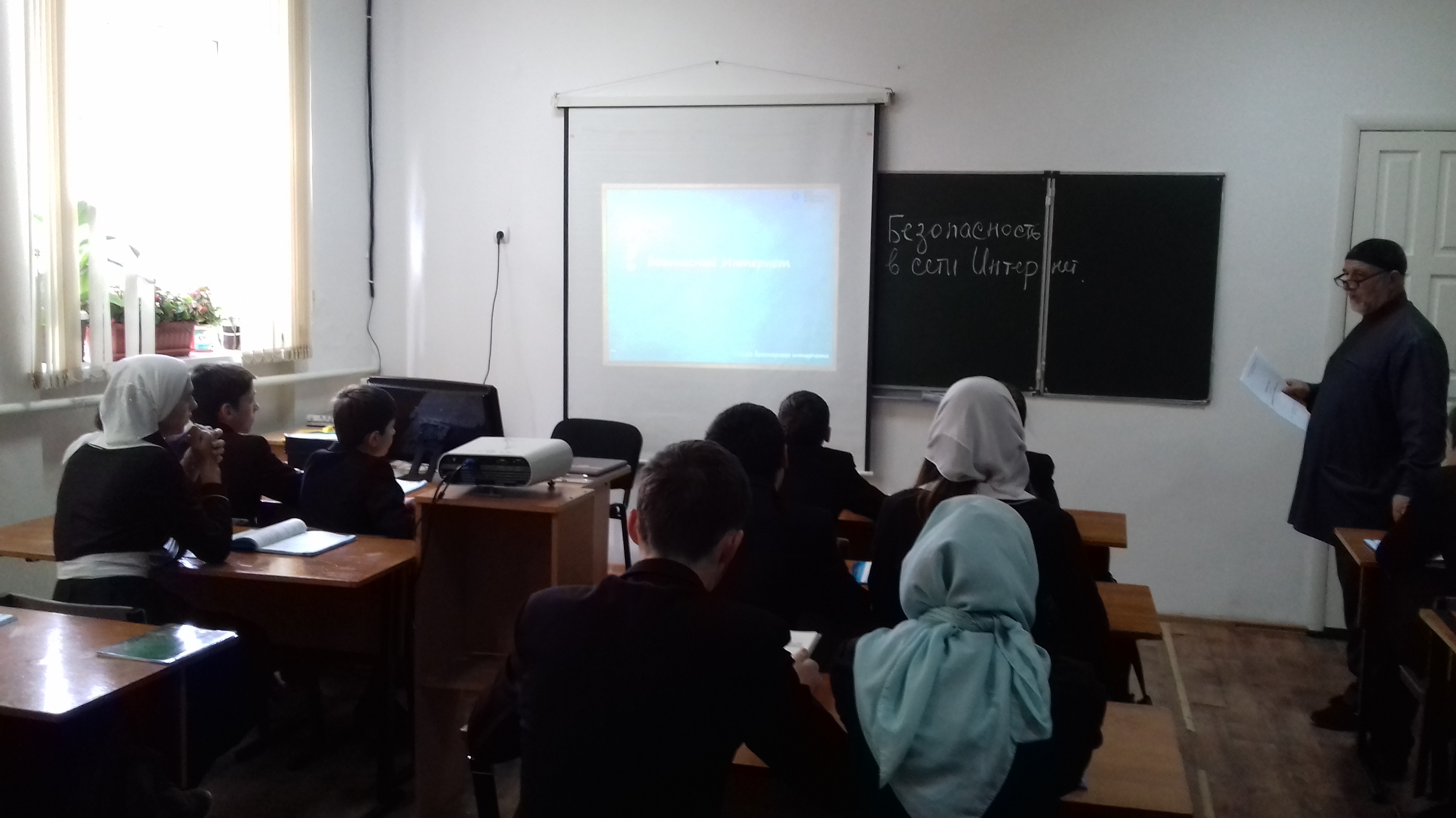 27.10.2016 года, учитель информатики А.Д.Бисултанов, и зам.директора по ИКТ Р.Д. Кагарманов, в рамках проекта "ЕДИНЫЙ УРОК", в 9 "А" классе провели открытый урок на тему: "Безопасность в сети Интернет". Целью данного урока является формирование у школьников компитенций цифрового гражданина для успешной и безопасной жизни и учебы во ВСЕМИРНОЙ СЕТИ. На уроке также присутствовала классный рукаводитель 9 "А" класса М.Д. Хадукаева.